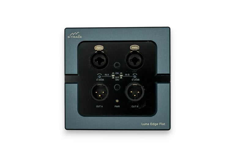 The Luna Flat is a compact Dante™ PoE audio interface engineered for seamless integration into installed AV environments. Designed for flexible wall, floor, or desk mounting, the Luna Flat provides two mic/line input channels via female XLR/TRS combo jacks with onboard trim control and selectable phantom power for condenser microphones. Two balanced line-level male XLR outputs allow Dante network audio to be routed to analog destinations such as amplifiers, speakers, or signal processors. Powered entirely via PoE and optimized for simple deployment, the Luna Flat is a versatile I/O node for conference spaces, classrooms, houses of worship, corporate AV, and broadcast facilities.